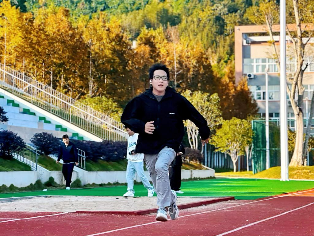 在第二部分的比赛中,50m迎面跑和跳大绳的比赛更是将现场气氛推向了高潮。50m迎面跑的队员们拼尽全力,向着终点冲刺,将接力棒稳稳地传递给队友。跳大绳的比赛中,两名队员负责摇绳,其余队员依次跳入绳中,连续跳绳5个,他们的默契配合和精彩表现赢得了现场观众的阵阵喝彩。