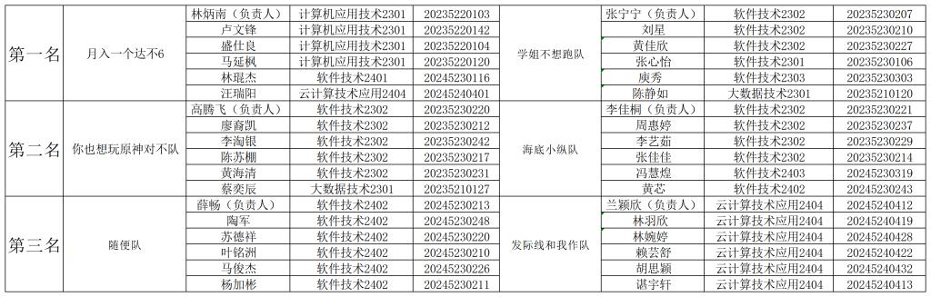 经过一下午的激烈角逐,各项比赛圆满结束。以下是本次比赛的获奖名单: