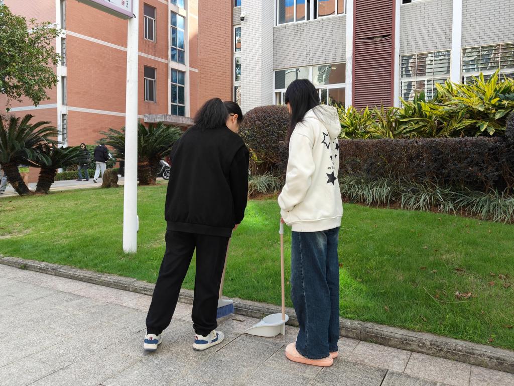 活动当日,校园内热情洋溢、活力满满,同学们满怀热忱、士气高昂,依据事前的周密部署,分工协作、有条不紊地奔赴校园各个关键区域,迅速投身清洁“战场”,以高度的专注神情与认真态度诠释着责任担当。