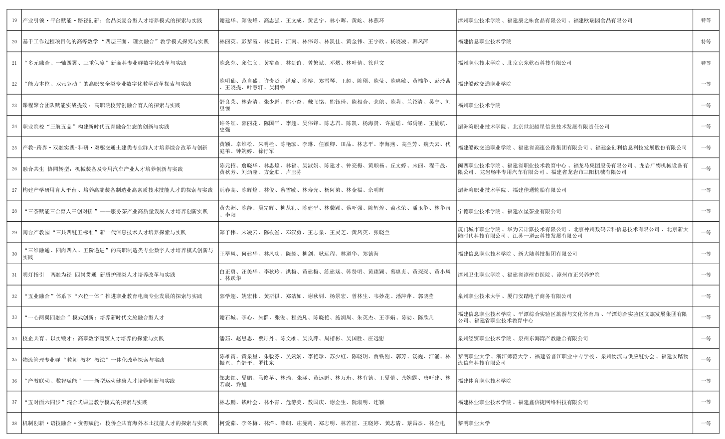近日,福建省教育厅发布了《关于2024年福建省职业教育教学成果奖拟获奖项目的公示》,经专家评审,评选出2024年福建省职业教育教学成果获奖项目。信息工程系申报的《双线贯通 三能激活 五元融合:大数据技术专业群三教改革创新实践》荣获2024年福建省职业教育教学成果奖 (高等职业教育)“二等奖”。