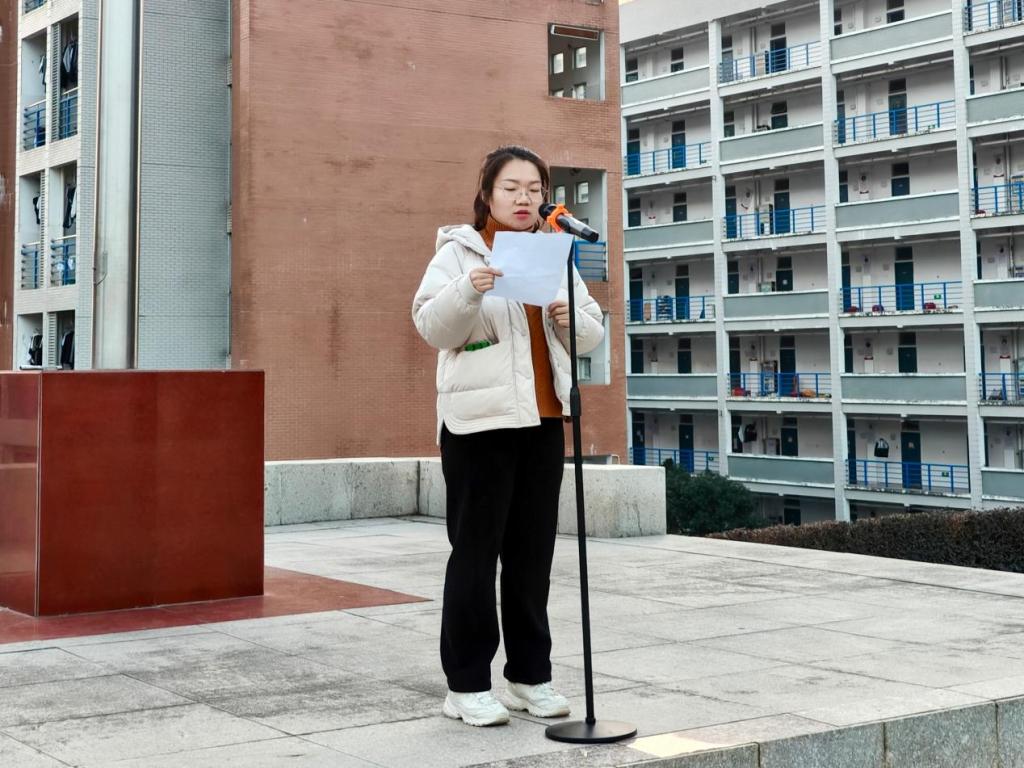 升旗仪式结束后,陈雅佳老师发表了国旗下讲话。临近期末,她指出期末考试是对同学们一学期学习成果的一次全面检验,更是对同学们学习态度、方法和毅力的一次深刻考验。她希望同学们做好充分的准备,珍惜这次机会,以诚信为本,认真答题,展现自己的真实水平。其次,岁末年初,往往是诈骗案件高发期,她提醒同学们要保持高度警惕,不轻信陌生人的电话、短信和网络消息,不随意透露个人信息和银行账户密码,遇到可疑情况,要及时向家长、老师或警方求助,携手共同营造一个安全、和谐的校园环境。最后,陈老师也希望同学们在享受寒假的同时,也不要忘记学习,可以利用这段时间巩固已学知识和学习新技能。此外,陈老师还提醒同学假期期间要注意安全,遵守交通规则,不要到危险的地方玩耍,保持健康的生活方式,合理安排饮食和作息,确保身心健康。