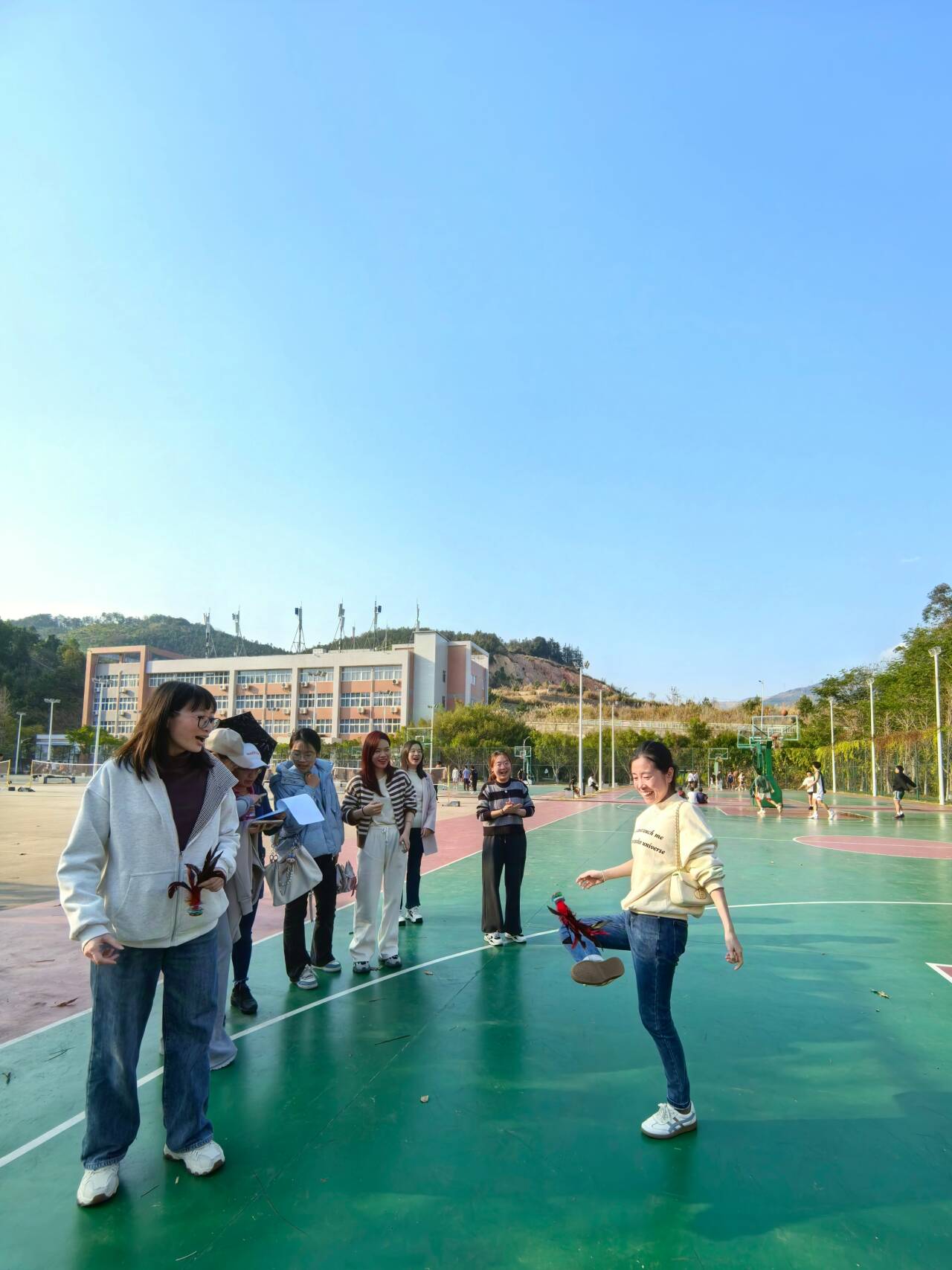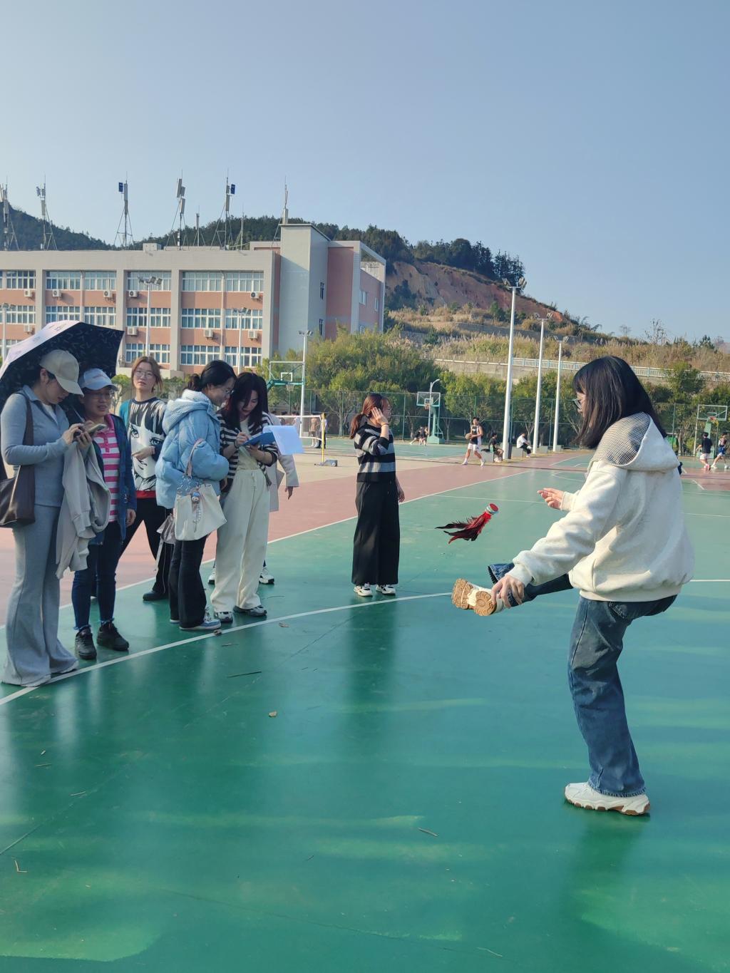 在踢毽子赛项中,大家你追我赶、互不相让,现场气氛热烈欢快,尽情享受着这难得的交流机会。