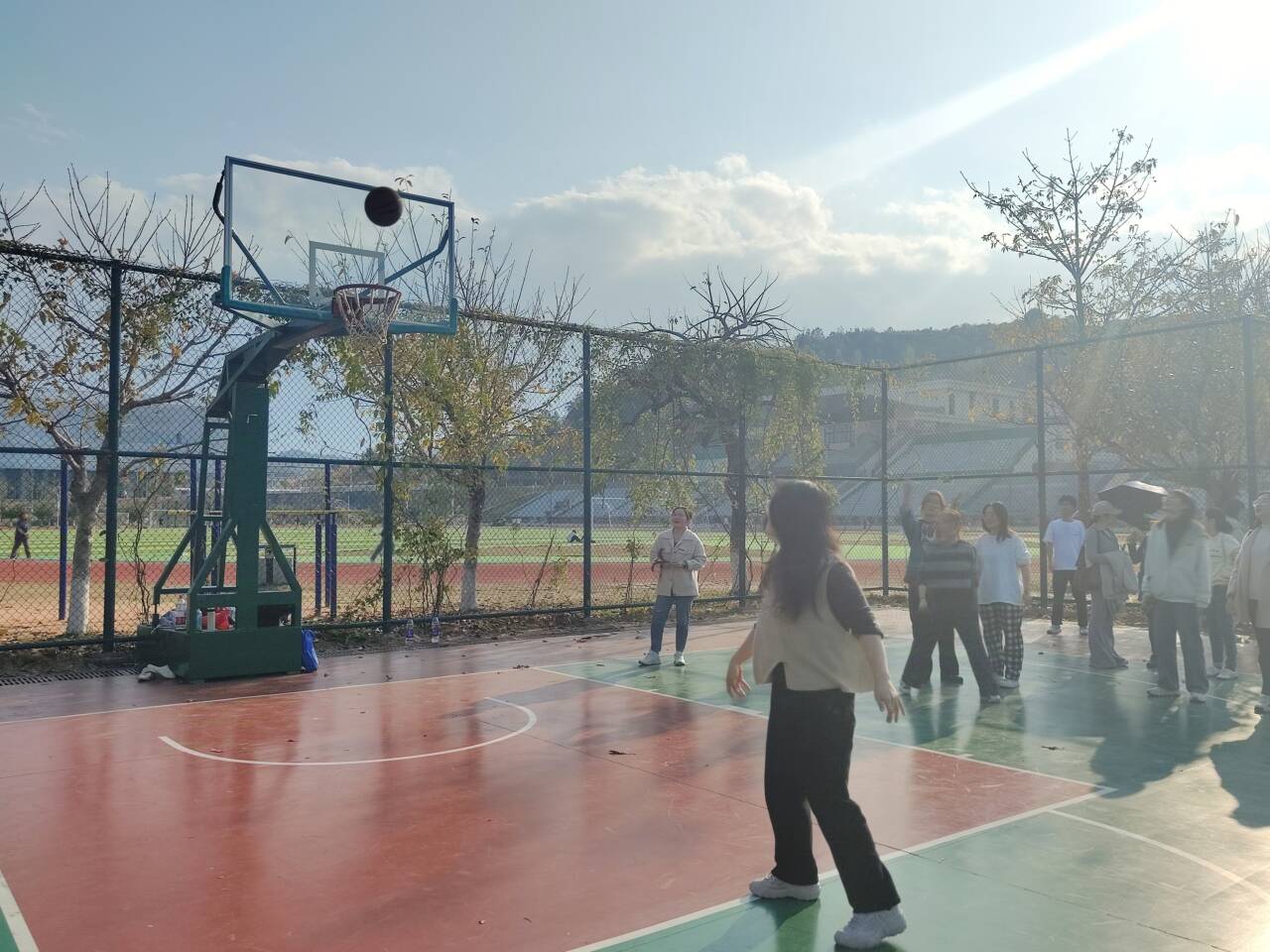在定点投篮赛项中,大家神情专注、认真把握投篮机会,充分展示了各位女教职工“巾帼不让须眉”的魄力和勇气,完美地诠释了力与美的结合。