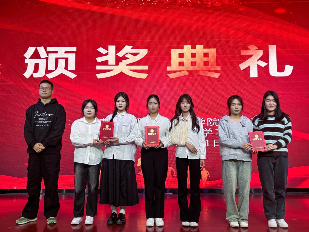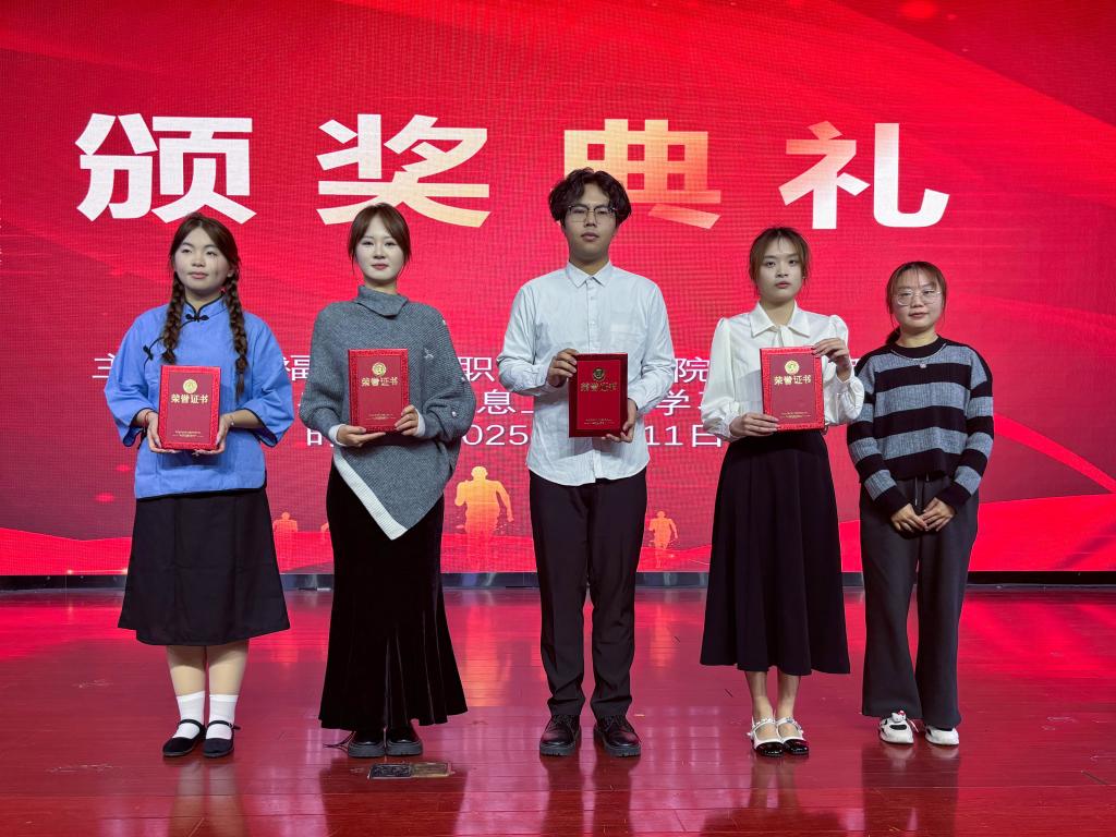 系部老师为获奖选手颁发了证书和奖品,并合影留念。