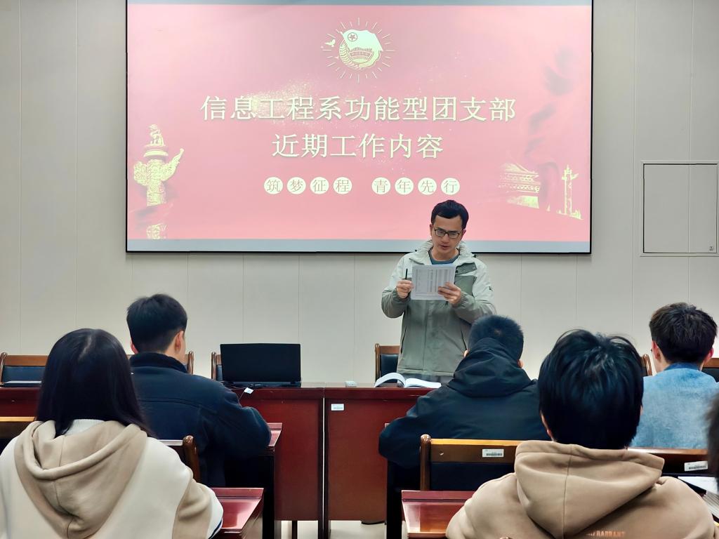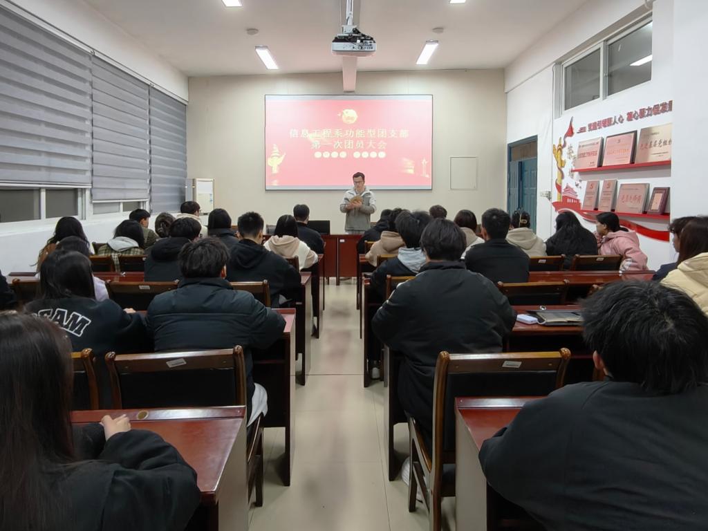 为深化 "一站式" 学生社区建设,加强基层团组织规范化建设,凝聚青年学生力量,2025年3月31日19:00,信息工程系“一站式”学生社区功能型团支部成立大会在信工楼 408 会议室成功召开。本次会议由系学生科科长兼团总支书记吴文杰老师主持,团员代表参加。
