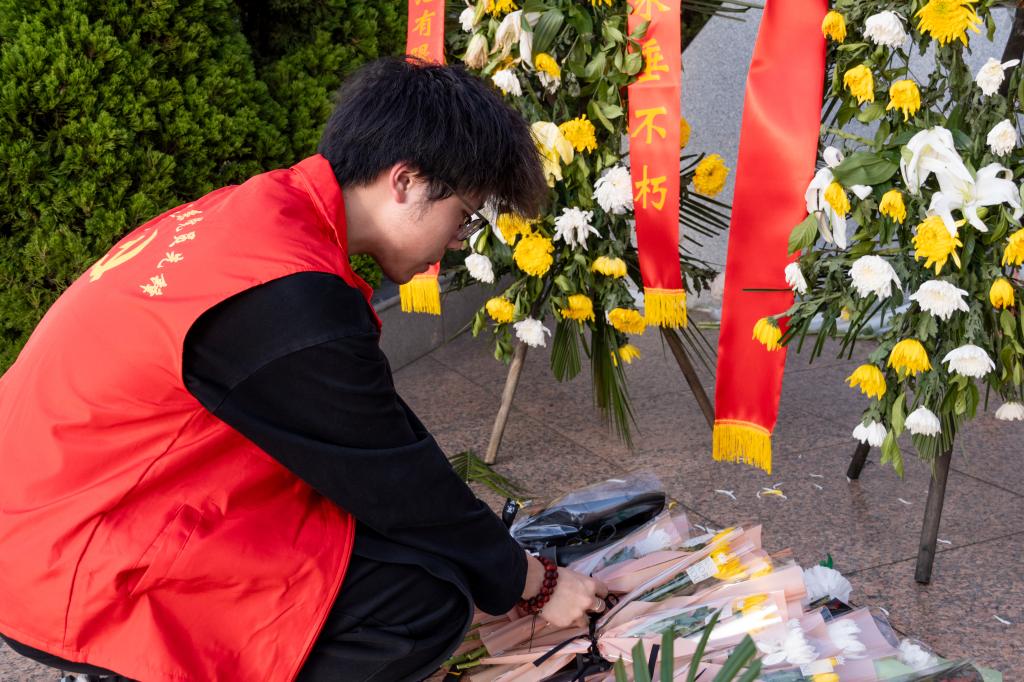 “青山埋忠骨,史册载功勋。”在一分钟默哀仪式中,全体师生低头闭目,与历史进行跨越时空的对话,全体师生深切缅怀为民族独立解放、国家繁荣富强作出牺牲和奉献的英雄先烈们。现场气氛庄重肃穆,不少同学眼眶泛红,为先烈们的无私奉献和牺牲精神所动容。