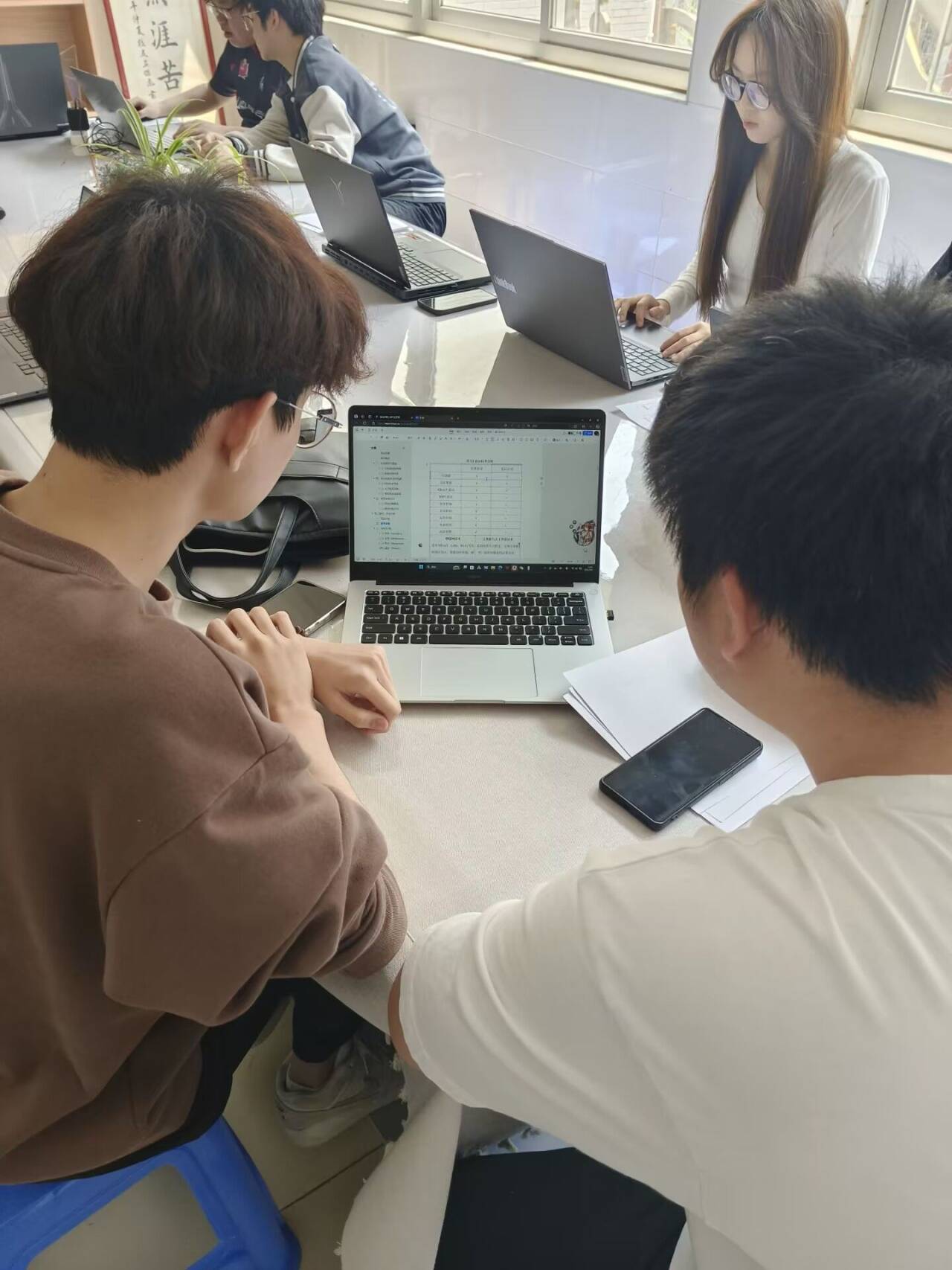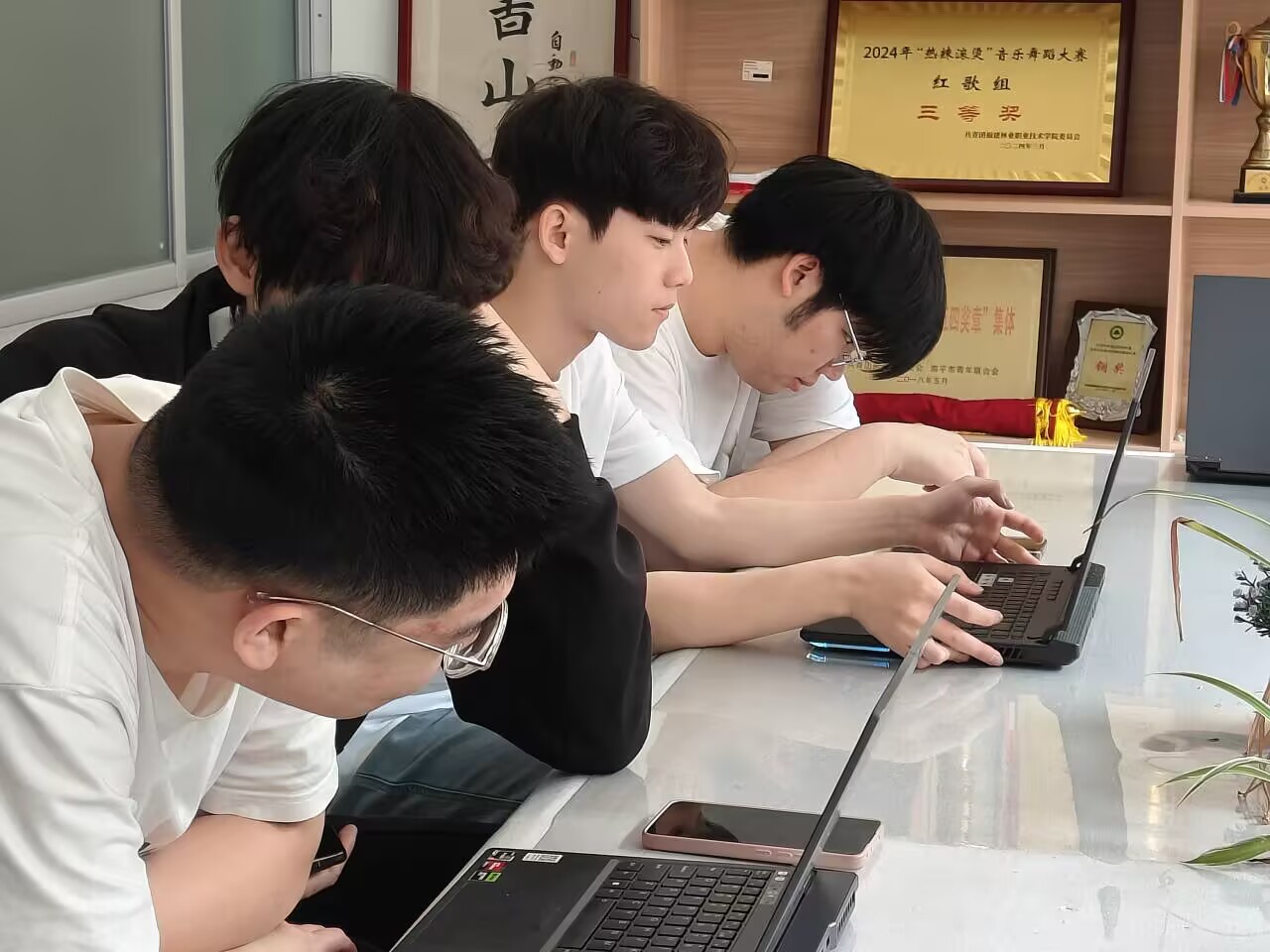 顺应这一时代潮流,2025 年 4 月 8 日,信息工程系积极响应号召,重磅推出创新创业指导一站式服务。当日,系学生科科长吴文杰、专任教师吴金山深入信息工程系学生“一站式”服务中心,悉心指导学生备赛。他们穿梭于学生中间,针对项目的创意亮点、商业逻辑等方面进行细致点评,为学生们答疑解惑,助力参赛项目精益求精。