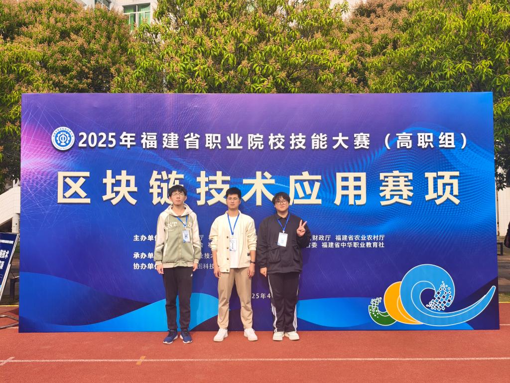 4月12日,由福建省教育厅主办的2025年福建省职业院校技能大赛(高职组)“区块链技术应用”赛项在福建信息职业技术学院成功举办。经过连续6小时的比拼,我系教师范剑宏指导的金云鹤、冯宗鹏组成的代表队获得三等奖。