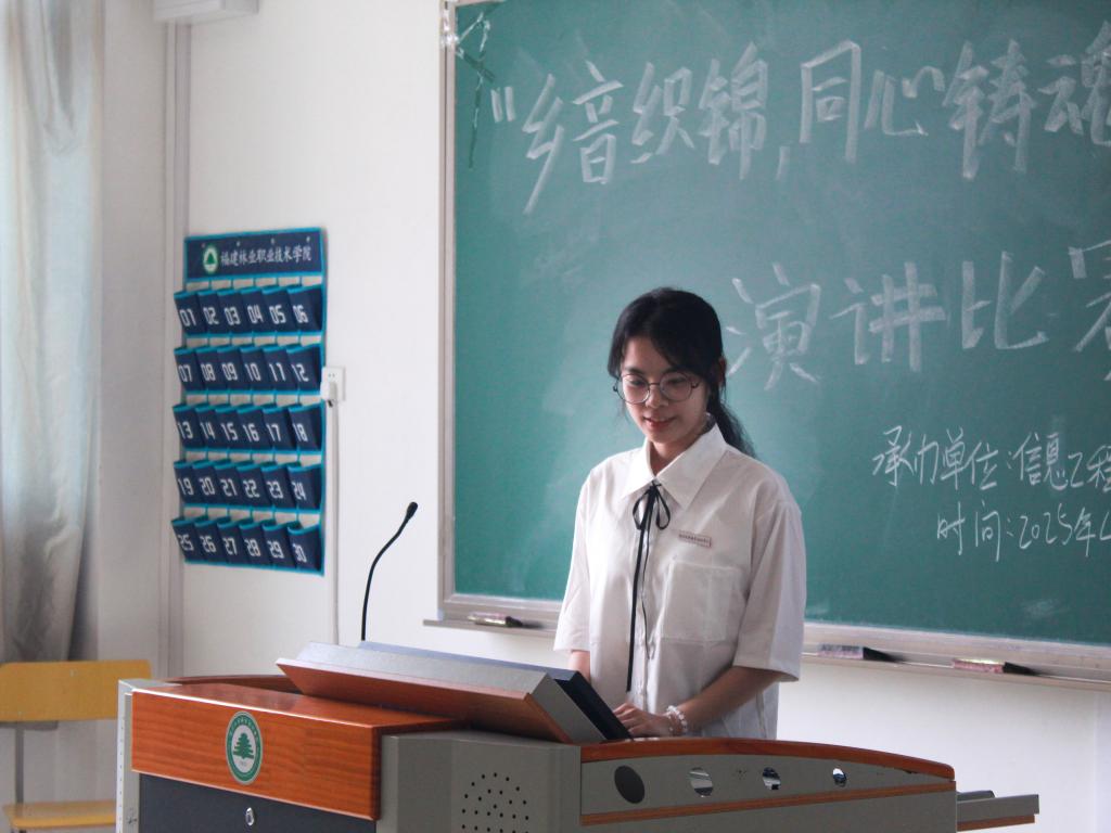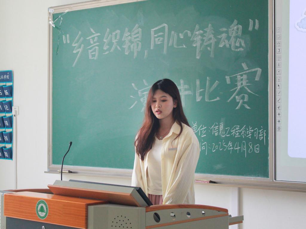 为深入贯彻党的二十大关于 “推进文化自信自强,铸就社会主义文化新辉煌” 的重要精神,进一步弘扬中华优秀传统文化,让同学们深入理解家乡文化,铸牢中华民族共同体意识,4月8日下午3点,信息工程系学习部在教学楼609举办 “乡音织锦,同心铸魂” 主题演讲比赛。本次活动以 “我的家乡故事与铸牢中华民族共同体意识相结合” 为主线,通过搭建文化交流平台,引导青年学生在讲述家乡故事中感悟中华优秀传统文化的精神脉络,凝聚民族复兴的青春力量。