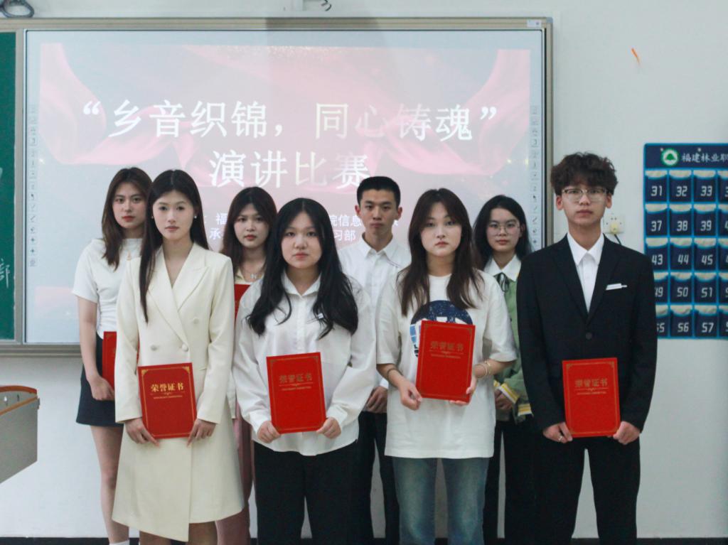比赛现场,来自不同班级的选手们以饱满的热情展开激烈角逐。他们巧妙运用视频、PPT 等多媒体手段,将方言乡韵、民俗风情、地域变迁与中华民族共同体理念深度融合:有的从 “蚌埠住了” 的网络热梗切入,解码安徽珠城的历史底蕴与时代蝶变;有的以福建宁德 “山海交响” 的发展奇迹,展现民族团结助力乡村振兴的生动实践;更有选手通过闽南语童谣、“游神”文化等特色表达,勾勒出各民族文化在交流互鉴中形成的中华文化共同体图景。选手们的演讲既充满浓郁的乡土气息,又彰显了 “各美其美,美美与共” 的民族共融精神,引发现场师生的强烈共鸣。经过激烈的角逐,最终评选出一等奖1名,二等奖2名,三等奖3名。获奖名单如下所示: