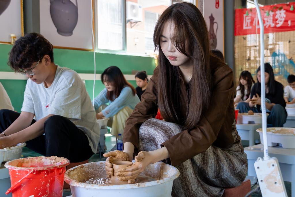 为深入学习贯彻习近平总书记关于加强文化遗产保护传承、弘扬中华优秀传统文化的重要论述精神,推动中华优秀传统文化创造性转化,2025年4月10日14:30,信息工程系在茶洋窑劳动实践基地举办创意体验课。活动特邀茶洋窑陶瓷烧制技艺非遗大师应德仁与就业创业部部长陈静如“双师同堂”,其中陈静如学姐以“非遗技艺现代传承者”的双重身份,通过专业讲解与实践分享,架起传统工艺与青年学子之间的桥梁,成为连接历史底蕴与创新实践的关键纽带。