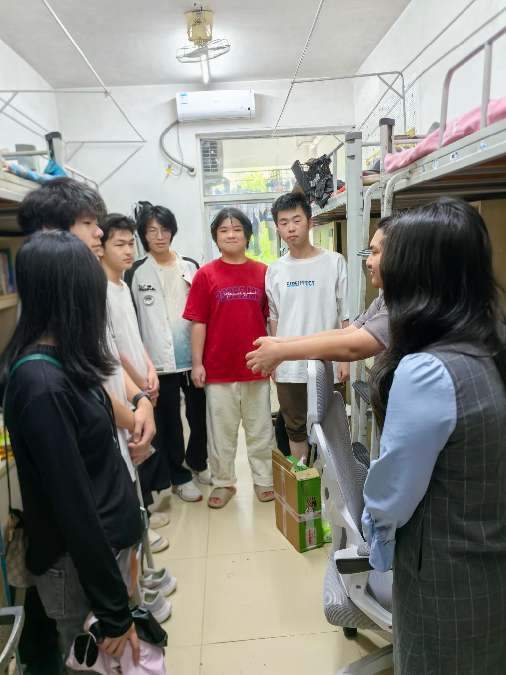 在安全检查的同时,各班级辅导员、班主任走进宿舍与学生亲切交谈,开展 "沉浸式" 学业关怀。老师们详细询问学生的课程学习进度、职业规划方向,耐心倾听学生在生活和学习中遇到的困难与问题。针对学生在学业上的困惑,班主任们结合自身经验,给予了针对性的指导和建议,鼓励学生合理安排时间,制定学习计划,保持积极向上的学习态度。老师们的关怀让同学们感受到了系部的温暖,增强了他们在学业上奋进的动力。