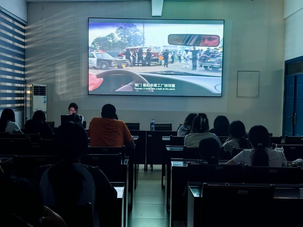活动现场,同学们怀着期待的心情走进观影教室,随着电影序幕缓缓拉开,即刻沉浸于楚门的 “虚拟人生”。影片中,主角楚门从出生起便生活在导演精心打造的巨型摄影棚里,他的一举一动都被 24小时直播,而他却对此浑然不觉。随着剧情推进,楚门逐渐发现生活中的种种异常,便开始踏上寻找真实世界的冒险之旅。跌宕起伏的情节、细腻深刻的情感表达,让同学们沉浸其中。当楚门最终划破 “天空穹顶”,那句“假如再碰不到你,祝你早、午、晚都安”的经典台词,引发全场热烈掌声,成为刺破信息茧房的精神象征。