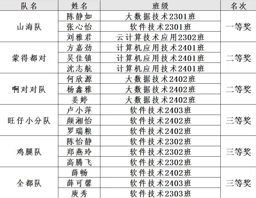 经过激烈比拼,最终评选出一等奖 1队、二等奖 2队、三等奖 3队,具体名单如下: