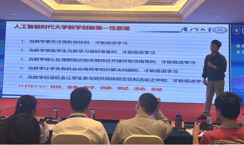 厦门大学教育研究院郭建鹏教授以《人工智能时代大学教学创新的第一性原理》为题,提出“高阶目标”教学创新原则。