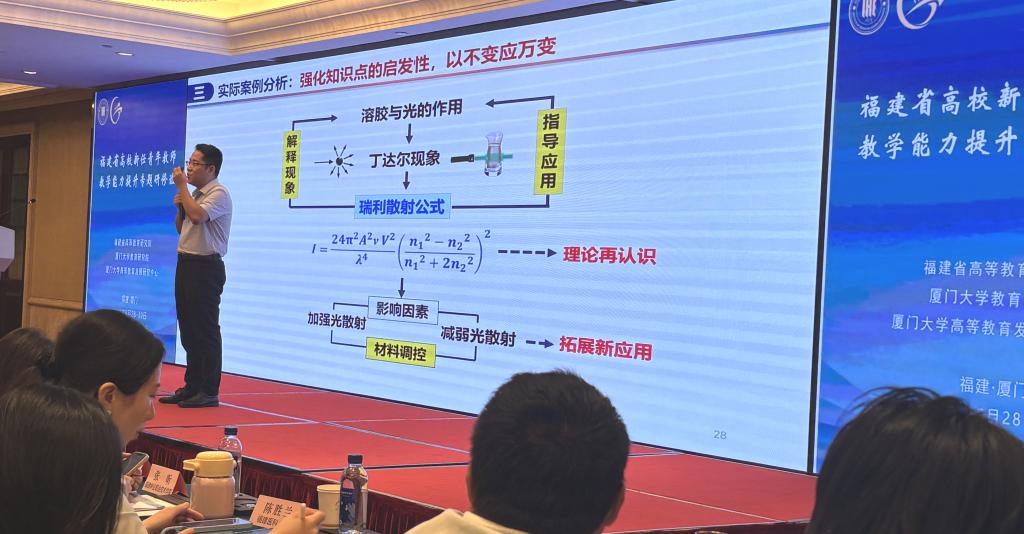 厦门大学材料学院张金宝教授以《如何做好教学设计—以青教赛参赛视角》为题,解析青教赛视角下的教学设计方法论。