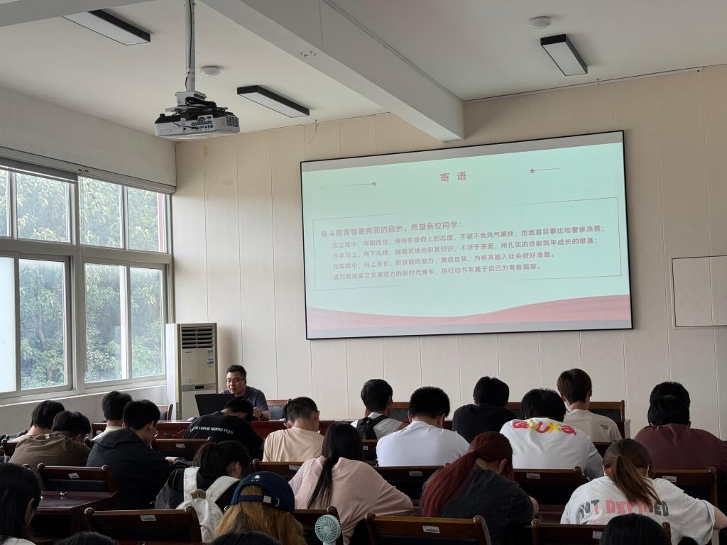2025年6月20日,信息工程系党总支书记、主任华建祥,在信工楼408会议室为计算机应用技术2401班的全体学生上了一堂生动的形势与政策课。本次课程以“青年学生要做中央八项规定精神的坚实践行者”为主题,旨在引导学生深刻理解中央八项规定精神,积极践行廉洁自律,为未来的成长和发展奠定坚实基础。