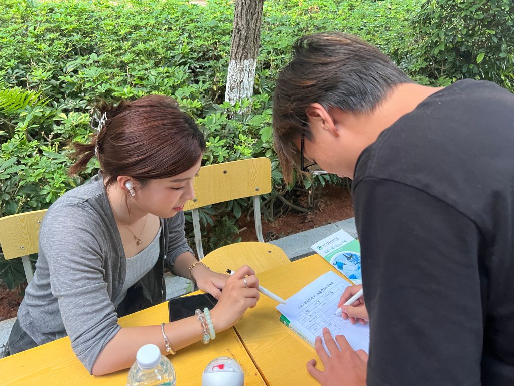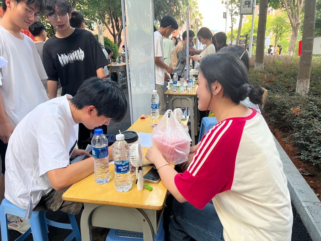 纳新当天,招新现场被装点成一条“梦想长廊”。每个摊位都像一座微型展厅,新生们攥着报名表一路“打卡”。志愿者们穿梭其间递上小零食,学长学姐们耐心解答学弟学妹疑问,细致讲解各自部门的职能与定位,让初来乍到的学弟学妹们更快了解和熟悉“两委会” 组织架构。