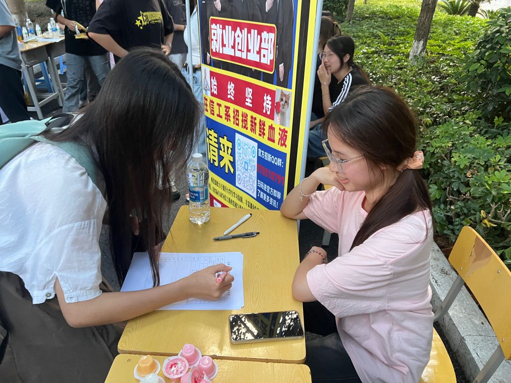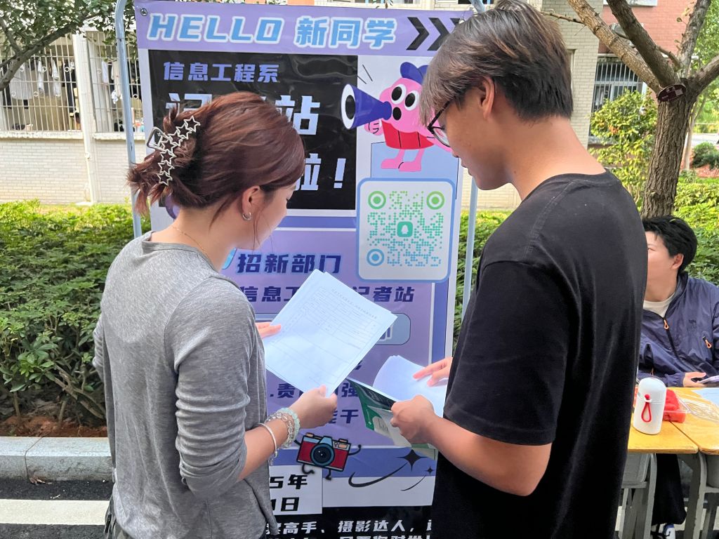 在这个丹桂飘香、满怀希望的季节里,信息工程系迎来了新一届学生组织的纳新季。为充分发挥学生组织的桥梁纽带作用,营造积极向上的校园氛围,进一步提升“两委会”的服务能力与组织活力,2025年9月11日傍晚5时,信息工程系两委会于江南校区正式开启纳新工作。各部门精心布置“展台",创意十足地展示各自部门海报和宣传方式,用真诚与热情迎接每一位怀揣梦想的新同学,共同开启一段充满挑战与成长的青春旅程。