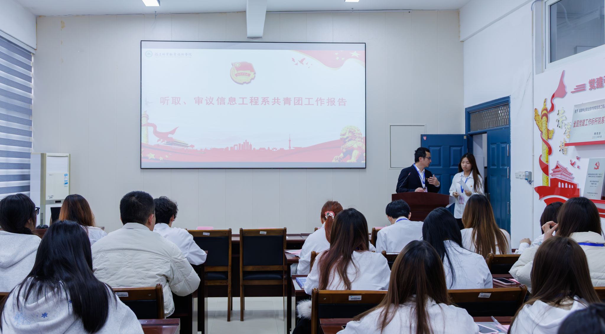 为深入学习贯彻党的二十大精神和习近平总书记关于青年工作的重要思想,凝聚青年力量、擘画发展蓝图,2025年12月19日下午15:30,共青团福建林业职业技术学院信息工程系第二次团员代表大会在信工楼408会议室隆重召开。院团委副书记(主持工作)吴旻,信息工程系党总支书记、主任华建祥,信息工程系专职组织员谢婉欣,学生科长吴文杰以及50名学生代表出席本次大会,本次会议由吴文杰老师主持。