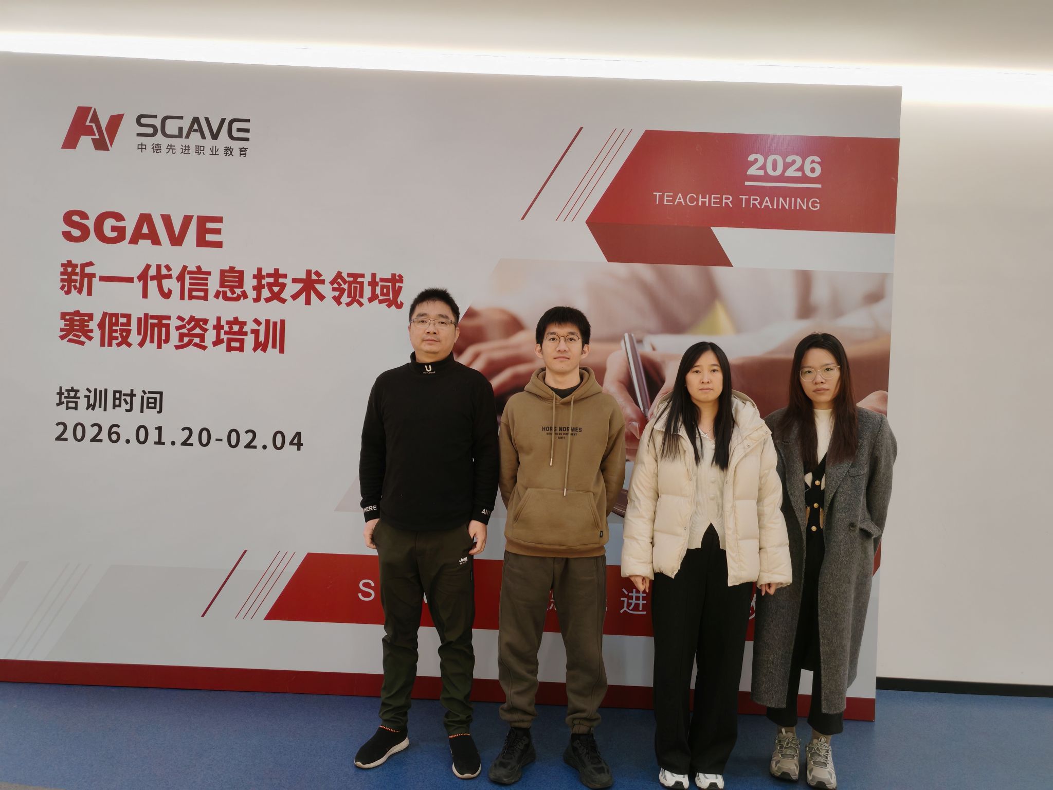 为深度融入中德先进职业教育合作项目(SGAVE),推动信息技术领域教学体系与德国标准对接,提升教师国际化教学与实践能力,信息工程系选派谢洁杰、叶青、周亭亭、江晨琳四位骨干教师,赴上海参加SGAVE(第二期)寒假师资培训(新一代信息技术领域)。本次培训由中德先进职业教育合作项目秘书处主办,德中睿智互联网技术(上海)有限公司承办,于2026年1月20日至2月4日举行。