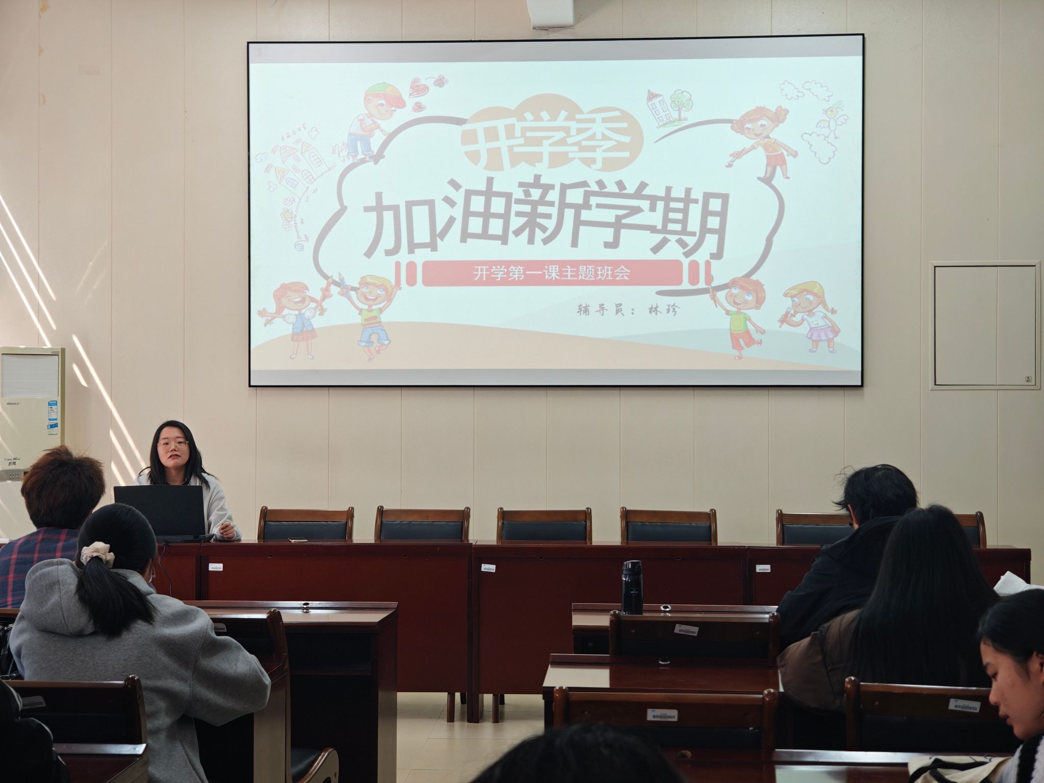 班会中,辅导员围绕网络安全、防范电信诈骗、交通安全、消防安全、人身安全等重点内容开展警示教育,结合典型案例讲解风险防范要点,切实提升学生安全意识与自我保护能力。详细解读《高等学校学生行为准则》及学院学生管理各项规定,强化纪律意识与规矩意识,引导学生自觉规范日常言行。同步开展心理健康教育与法治教育,帮助学生调适开学心态、缓解焦虑情绪,树立法治观念,养成文明守纪、积极向上的良好行为习惯。