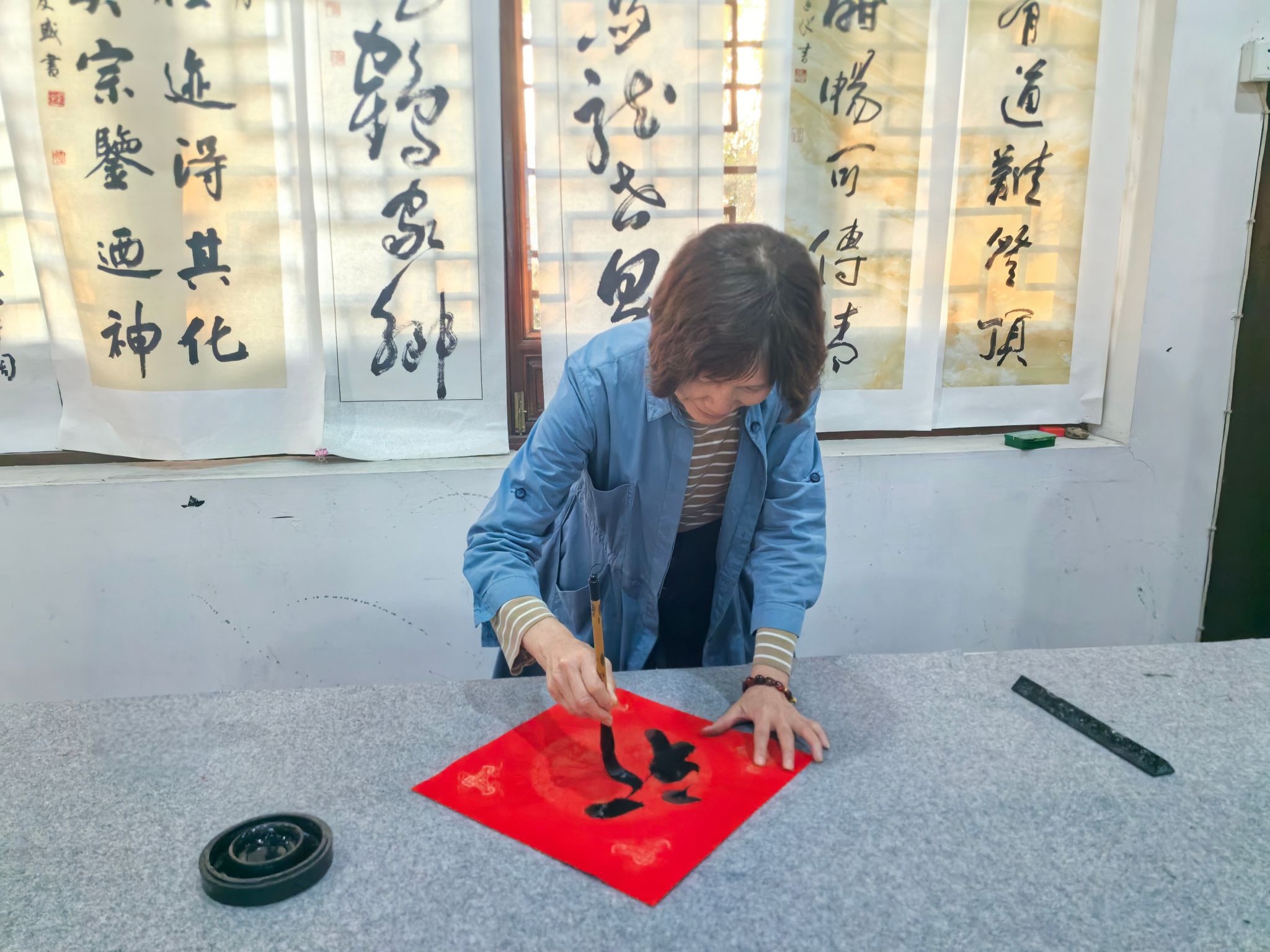 墨香传雅韵,执笔庆芳华。促进会黄老师现场为女职工开展书法体验教学,从握笔姿势、运笔节奏,到横竖撇捺的笔法技巧、汉字结构的布局规律,老师都细致讲解、耐心指导。通过学习书法,在一撇一捺中感受中华书法之美,在墨香氤氲中陶冶情操、涵养心灵。