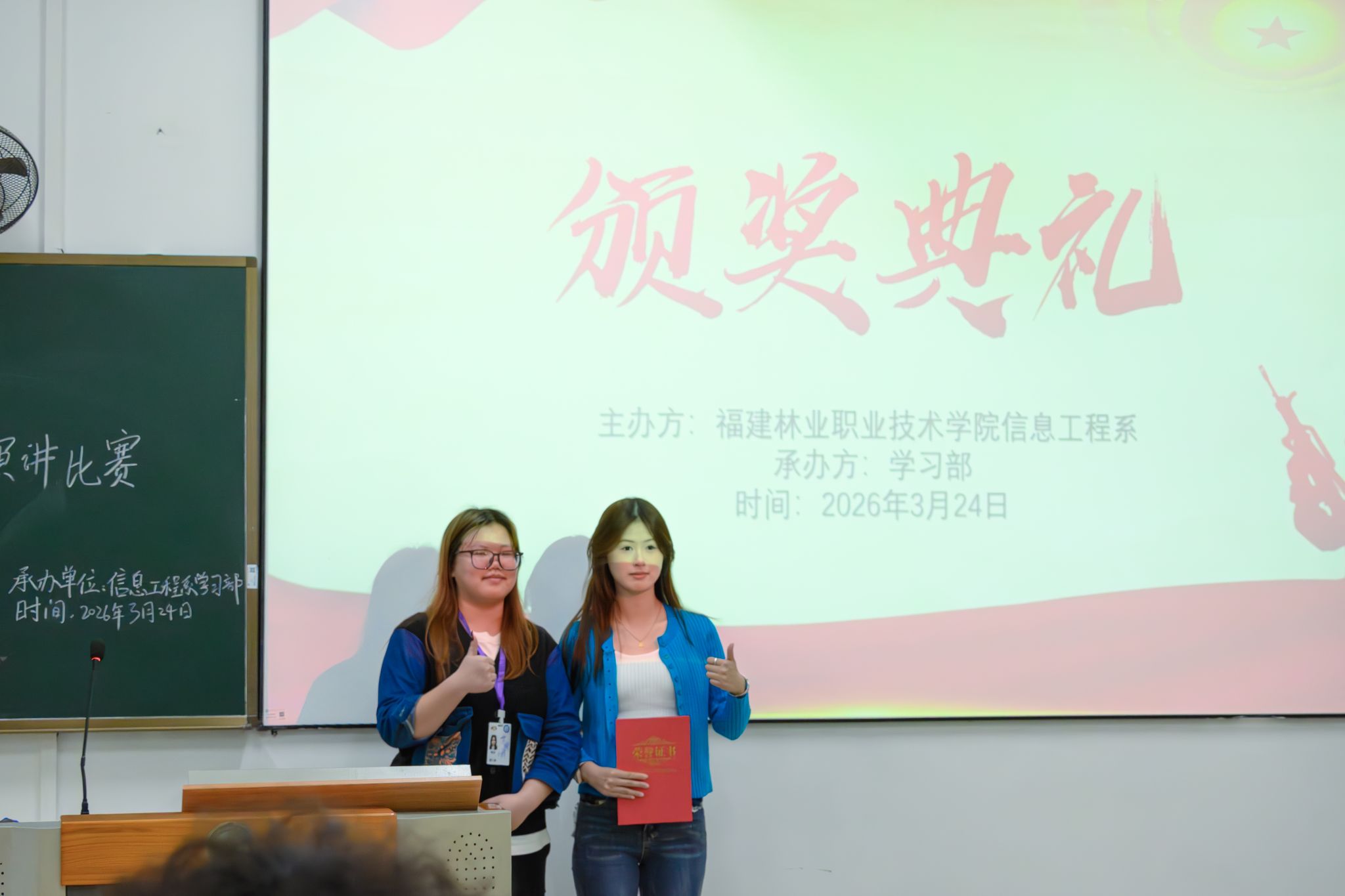 为深化系部国防教育工作,增强大学生国防意识与责任担当,营造关心国防、热爱国防的良好氛围,2026年3月24日,信息工程系在教学楼405举办“爱我国防”主题演讲比赛,活动吸引众多同学踊跃参与。