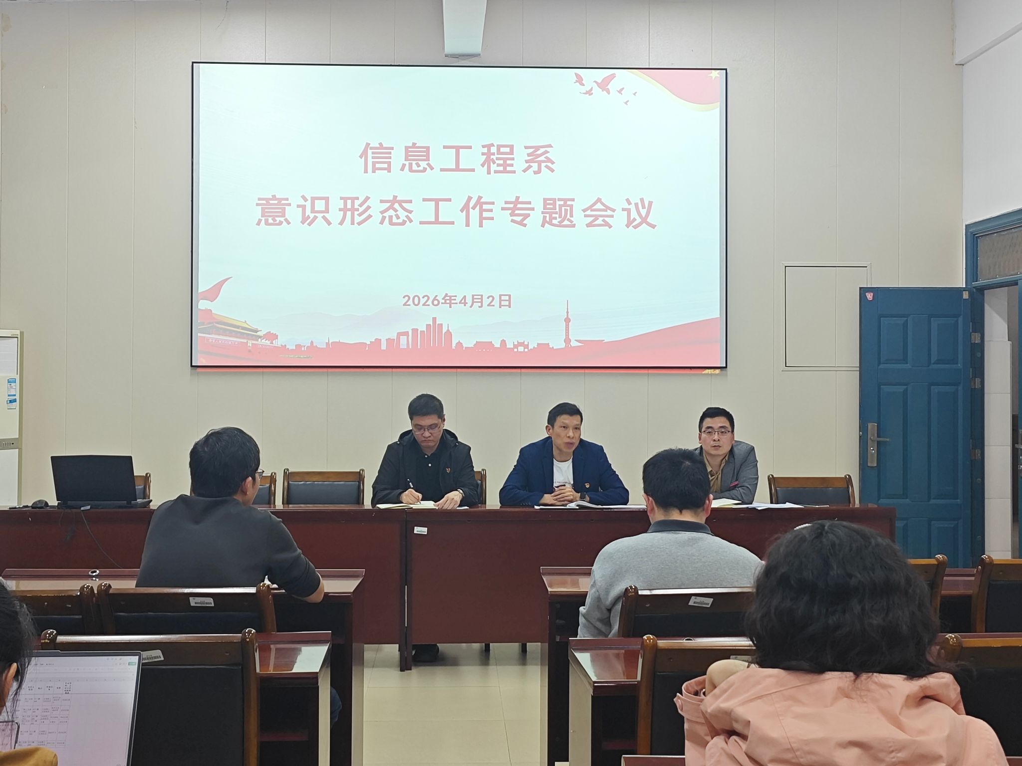 4月2日,信息工程系召开2026年度意识形态工作专题会议。院纪委书记詹其仙、系主任华建祥、党总支副书记(主持工作)王昉出席会议,全系教职工参会,会议由王昉副书记主持。