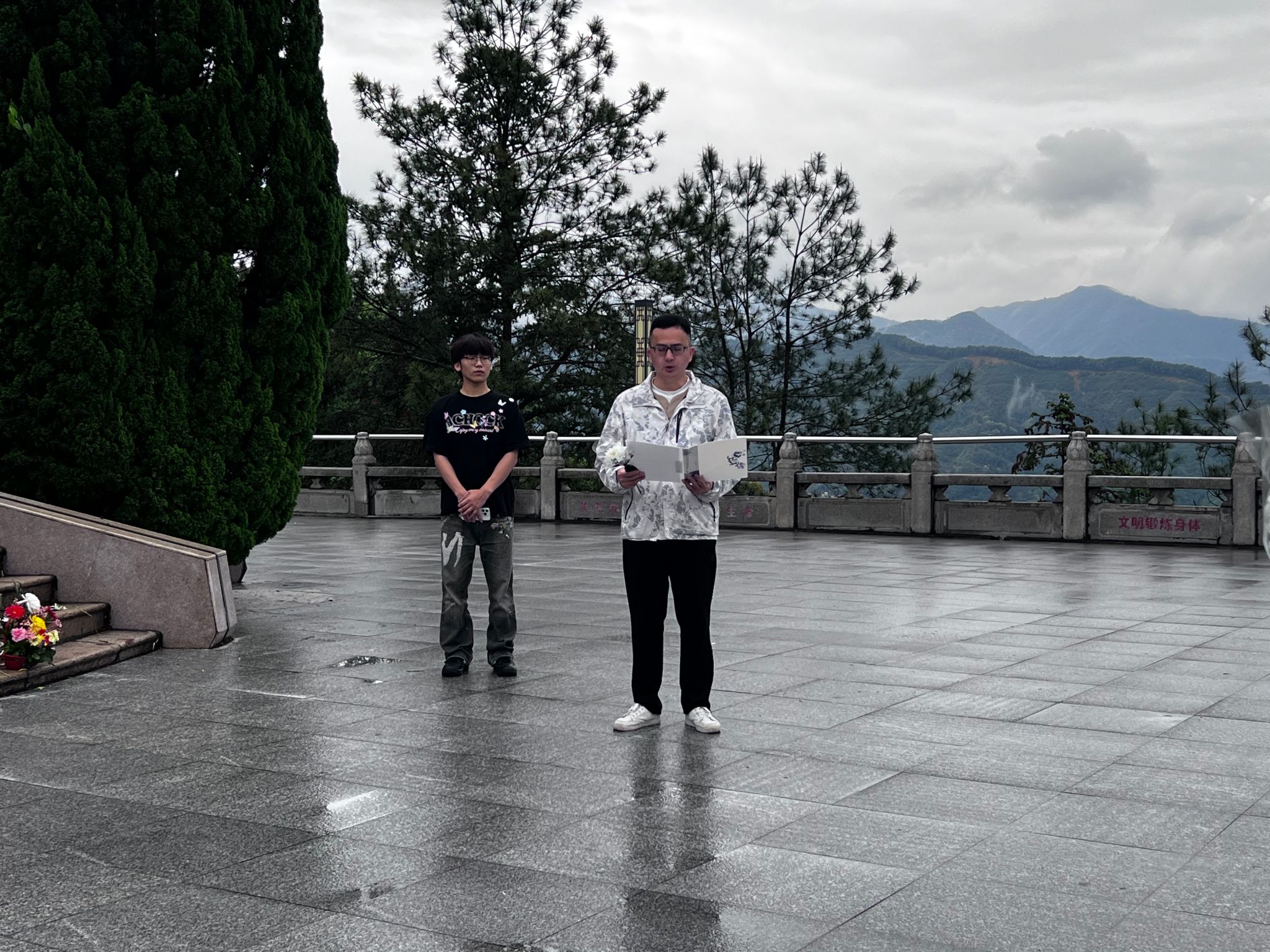 为深入开展爱国主义教育,传承红色革命精神,引导青年学子铭记历史、缅怀先烈,2026 年 4 月 7 日下午,信息工程系学生科长吴文杰带领学生代表前往九峰山革命烈士纪念碑开展清明祭扫活动。