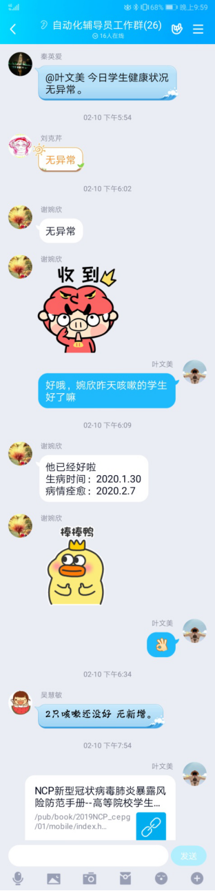 各辅导员一对一做好防疫心理辅导,科学引导,健康防疫