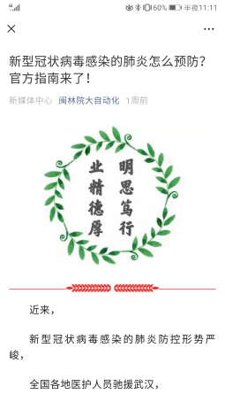 二是搭建宣传工作载体,做好思想引领。自动化工程系党总支创新工作方法,利用学生喜闻乐见的多种形式开展防控宣传工作,切实做好新型冠状病毒感染的肺炎疫情防控工作。利用QQ、网站、微信公众号等新媒体,制作发布基础防疫知识和系列“抗击疫情”比赛,报道自动化工程系“三支一扶”毕业生余伟毅等奋战在前方的战“疫”故事,让防疫科普工作贴近学生生活;依托辅导员队伍在学习强国、welink软件、优慕课等平台,召开线上防疫主题教育班会,通过多形式强调了预防病毒的重要性,同学们积极配合,热情发言,献计献策。