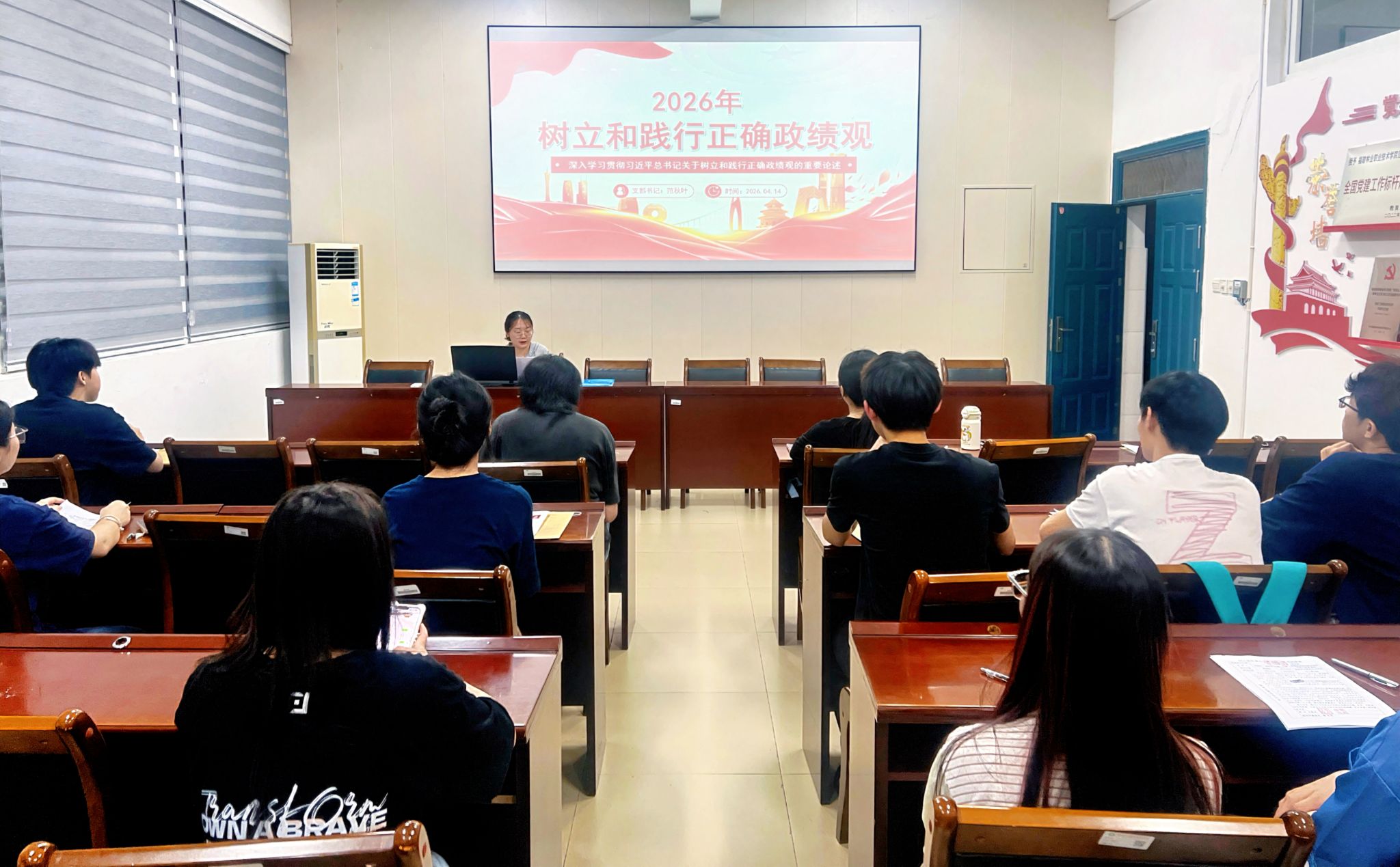 为深入学习贯彻习近平总书记关于树立和践行正确政绩观的重要论述,2026年4月14日晚上,信息工程系学生第一党支部书记范秋叶在信工楼408会议室,为61期入党积极分子讲授树立和践行正确政绩观专题党课。