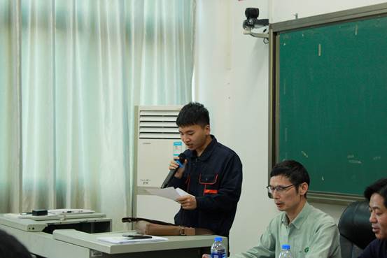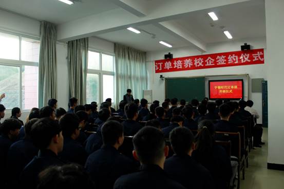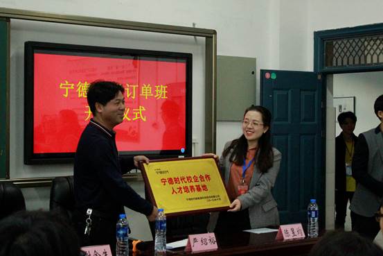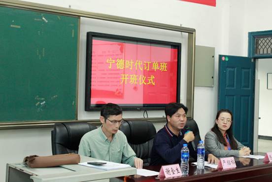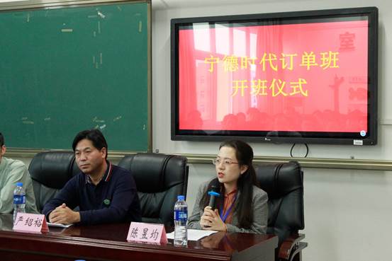 接着,“宁德时代订单班”学生代表发言。学生代表欢迎宁德新时代领导莅临我院,感谢企业为广大学子们提供发展机会和展现个人能力的平台。表示订单班学生们将会在平时学习中努力奋进为学校争光,在企业实习中为企业创造价值。
