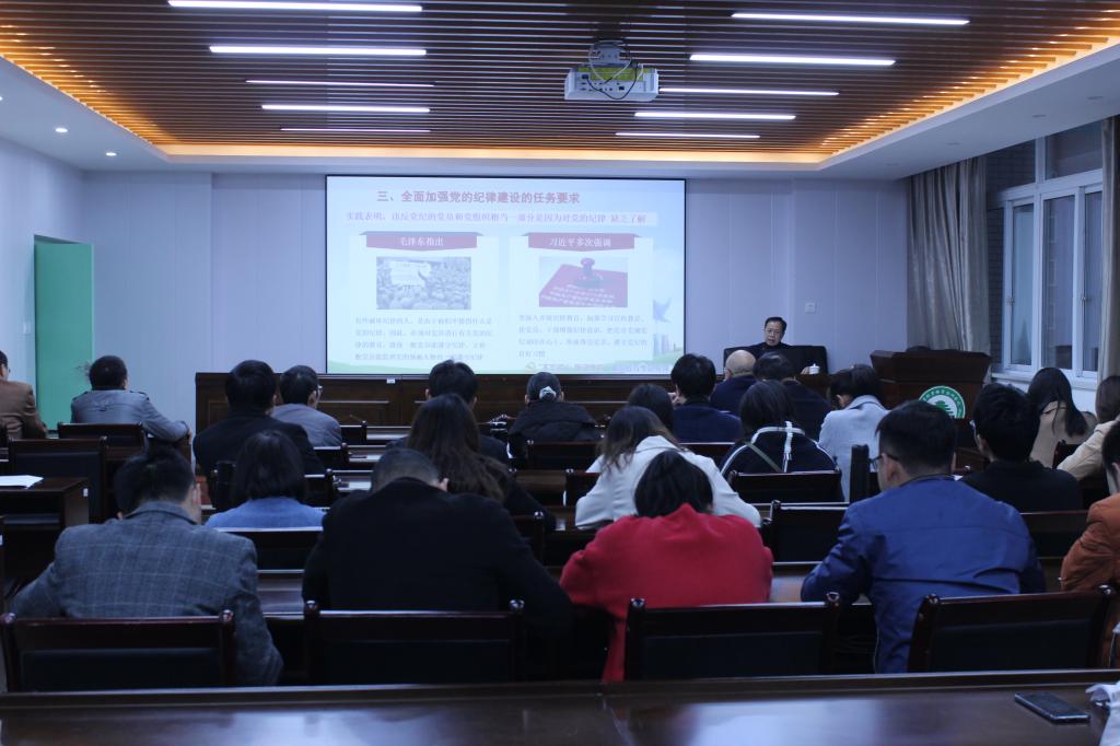 11月28日下午,实训二6楼会议室开展“加强纪律建设,夯实政治根基”专题党课,院纪委委员、各系党总支、直属支部纪检委员、自动化工程系和建筑工程系教师党员、纪检监察室团体人员参与本次党课。党课由学院纪委书记林建斌主讲。