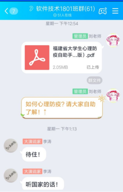 各辅导员一对一做好防疫心理辅导,科学引导,健康防疫