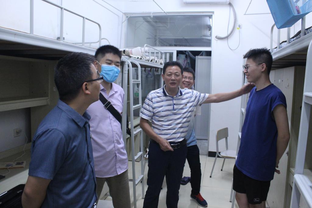 2020年9月5—6日,学院迎来秋季学期返校学生。寂静已久的校园,又恢复了往日生机与活力。5日、6日晚,信息工程系党总支书记吴奇镇、系主任华建祥、党总支副书记罗志斌、学生科长叶文美与辅导员一行,深入学生宿舍,看望慰问返校学生。