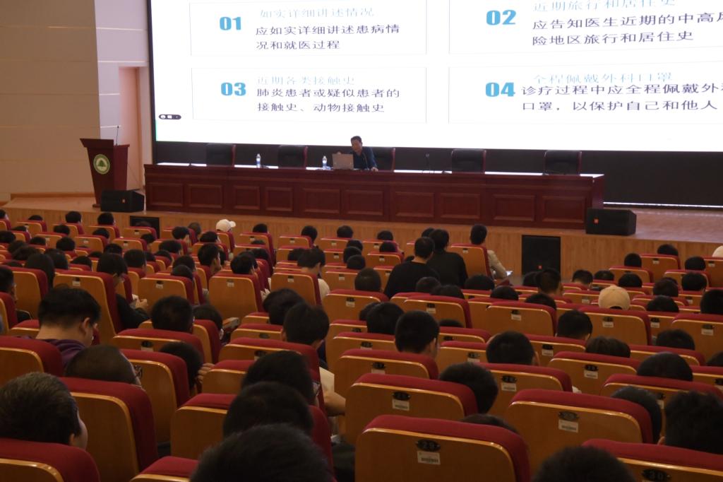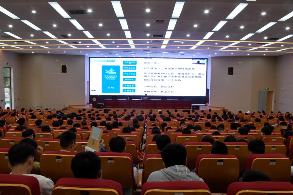 会议伊始,吴书记从新冠肺炎病原学特点、症状、传播途径、日常防护、应急处理等方面向新生们普及防疫知识,讲座上书记不断强调疫情防控工作的重要性,在公共场合时因应该带好口罩,积极配合学校工作人员(进行)的体温检查、日常消毒等。吴书记嘱咐新生们,在全校复学这样的大环境下,尤其要做好个人防护。