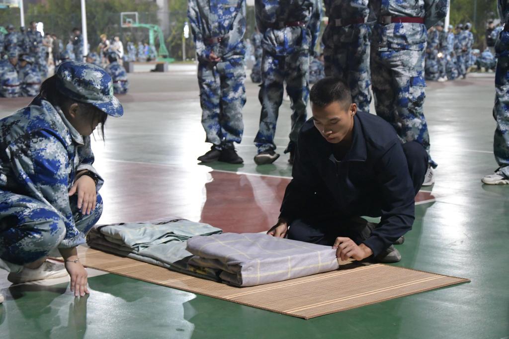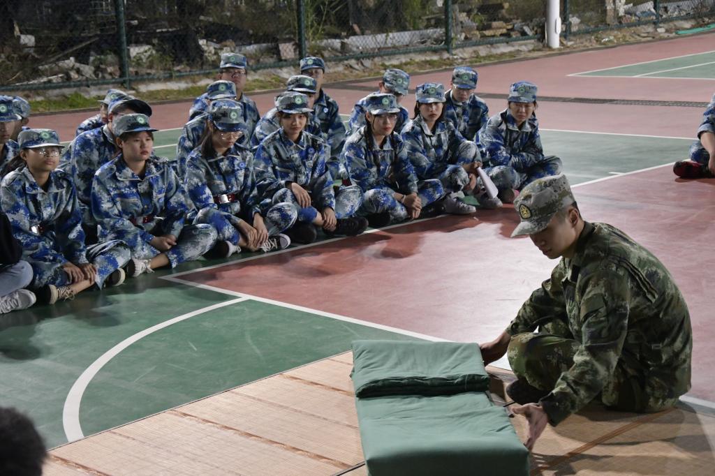 “出门看队伍,进门看内务。”宿舍卫生整理是新生军训的重要内容之一,也是新生军训必修的课程之一。为引导新生营造整洁舒适的学习和生活环境,11月5日晚7点,20级新生、辅导员和军训教官分别于篮球场以及宿舍内进行内务整理教学。