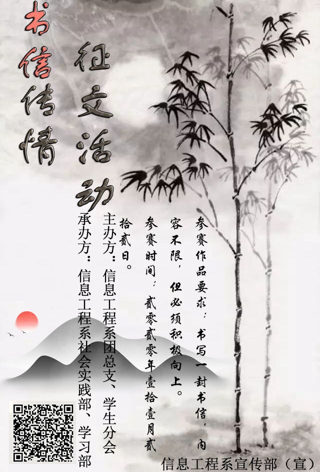锦书云中来,尺牍传深情。以书信传情达意、寄予厚望,是中华民族的优良传统,为了让同学们进一步弘扬优秀传统文化,信息工程系于11月份举办了以“书信传情”为主题的征文比赛。