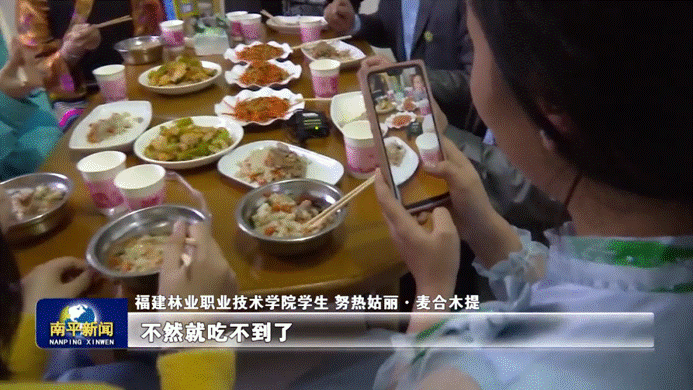 吃着家乡菜,聊着实习生活,姑娘们在喜庆和暖意中,感受在南平过的第一个春节。欢声笑语间,姑丽拿出手机和家人分享,浓浓的幸福几乎溢出屏幕。
