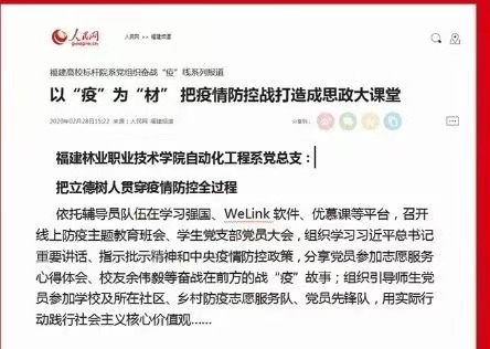 人民网报道自动化工程系党总支把立德树人贯穿疫情防控全过程