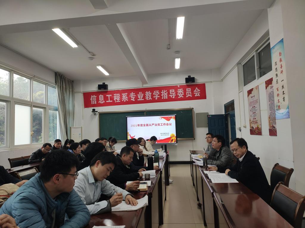 为了贯彻落实3月16日召开的学院2021年度全面从严治党工作部署会的会议精神,3月23日下午信息工程系党总支于实训三408会议室召开2021年度全面从严治党工作会议,信息工程系全体党员教师参加了会议,会议由系党总支副书记罗志斌(主持工作)主持。