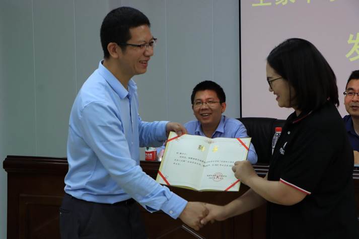 叶世森副院长为企业“班主任”王宇婷发放聘书