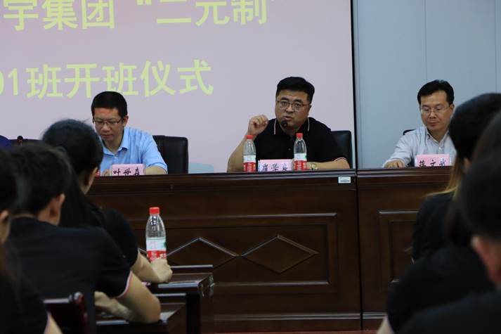 开班仪式上,叶世森副院长首先致辞,对莅临仪式的各位企业代表和圣象华宇集团“二元制”班全体同学表示热烈欢迎。叶副院长指出,举办圣象华宇集团“二元制”班标志着学院与圣象华宇集团在校企合作共同开展人才培养上取得新的成果。叶副院长指出,学院携手国内知名企业圣象华宇集团开展“二元制”人才培养,是企业、员工、学校三方共赢的办学模式,有利于学院提升学生就业质量,有利于企业员工提升学历与技能。叶副院长对全体“二元制”班同学提出殷切期盼,希望同学们珍惜学习机会,扎实学习专业本领,积极利用“二元制”平台,在今后的工作岗位上,发扬“敬业、吃苦、务实、进取”的天麟精神,为企业的持续、稳定、健康发展做出自己的贡献!