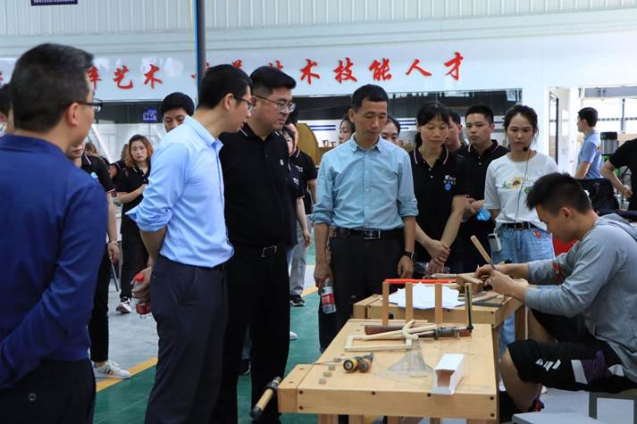 与会人员参观木材加工实训基地