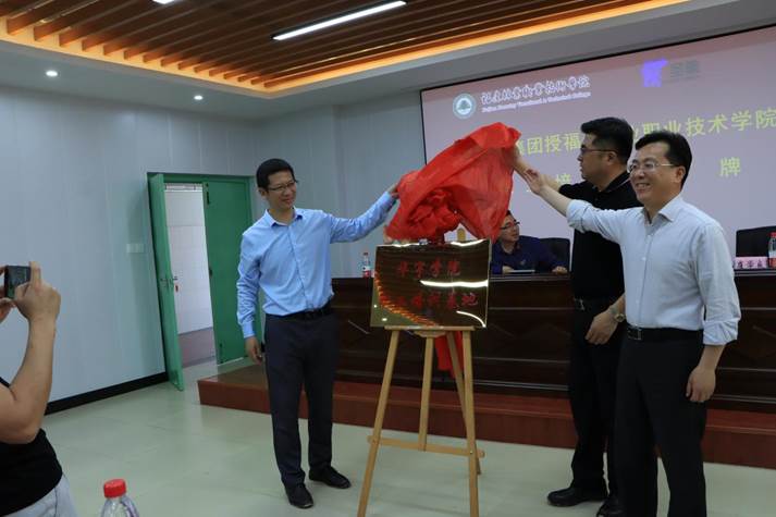 圣象集团总裁助理崔学良、人力资源总监蒋文武与叶世森副院长共同为圣象华宇集团“职工培训基地”揭牌