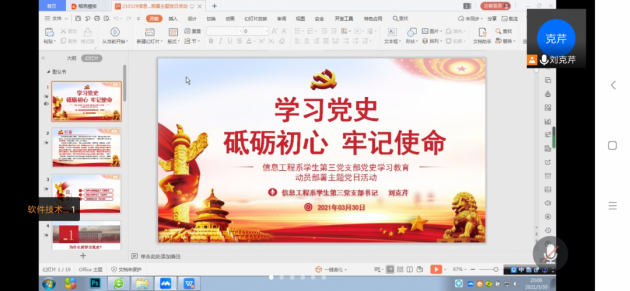 信息工程系学生第三党支部线上举行了“学习党史 砥砺初心 牢记使命”为主题的党日活动