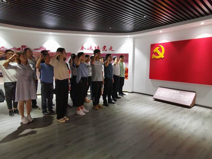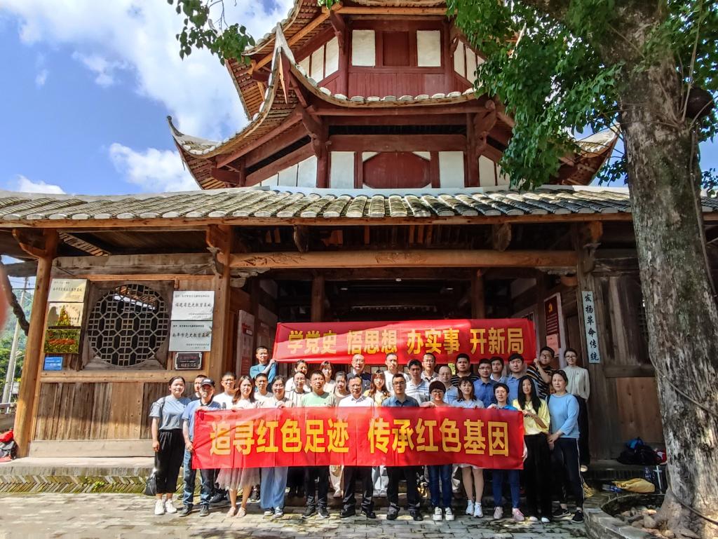 在南平市党史学习教育基地——延平区王台谈判旧址(八角楼),讲解员用朴实的语言,生动形象地讲述了东方军入延、芹山遭遇战、王台谈判等大事件,震撼人心的延平革命史让党员教师们进一步感受到先辈们艰苦奋斗、不怕牺牲的革命精神、爱国情怀。参观结束后,全体党员教师在系党总支副书记(主持工作)罗志斌带领下,面对党旗,再一次举起右拳,庄严地重温了入党誓词,重拾入党决心,再次点燃初心和使命。