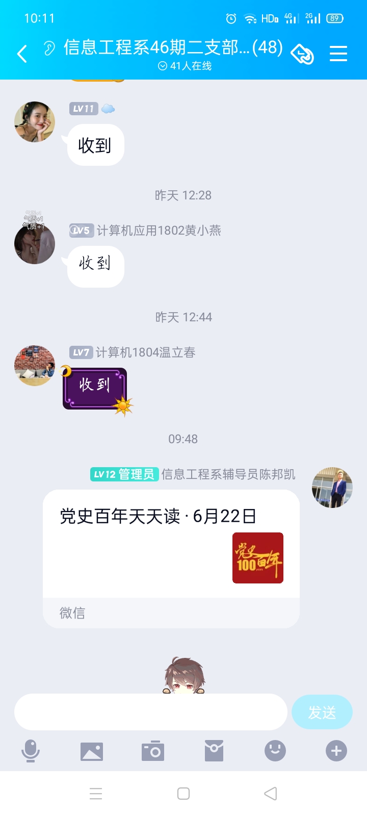 开辟线上学习教育途径,结合线下活动巩固打造学习宣传“双线”阵地,形成“双管齐下”局面,为党史学习教育成效构筑保障底线。学生第二党支部通过党员学习交流群推送党史百年天天读等党史材料,引导广大党员深刻铭记中国共产党百年奋斗的光辉历程,深刻认识中国共产党为国家和民族作出的伟大贡献,深刻感悟中国共产党始终不渝为人民的初心宗旨;支部还通过开展各类党史主题宣传教育活动,组织教师党员讲党史、组织支部党员观看党史题材《建党伟业》等,进一步浓厚学习氛围。